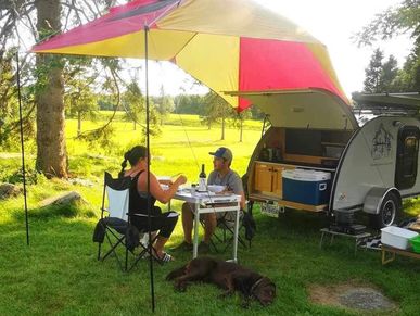 N'hésitez pas à me contacter si vous ne trouvez pas vos réponses. *********************************************************************** Q1. Quel est le poids et les dimensions de vos roulottes? --------------------------------------------------------------------- R1.1025 lbs (465kg) ****************** Q2. Est-ce que je peux tirer la roulotte avec ma voiture? -------------------------------------------------------------------- R2. Notre modèle est fait pour des boules standard de 2 pouces et un connecteur de 7 pins. ************************** Q3. Le connecteur de votre véhicule n’est pas le bon ? ----------------------------------------------------------------- R3. Aucun souci, nous avons les adaptateurs nécessaires, nul besoin d’aller faire changer le filage de votre voiture. **************************************************** Q4. Est-ce que je peux dormir confortablement dans vos roulottes ? ----------------------------------------------------------------------------------- R4. Les matelas Queen convertibles sont faits de mousse à Haute Densité de 4’’ vous procurant un maintien confortable. *************************************************************** Q5. Est-ce que je peux cuisiner ? ------------------------------------- R5. Liberty2go XL vous donne le luxe de pouvoir préparer vos mets préférés avec vue sur le paysage que vous aurez choisi pour vous arrêter. Elle a un comptoir de 10pc, des tablettes avec portes coulissantes et un espace pour glacière sur tiroir. Un réchaud au butane, une poêle électrique et un reservoir pour l'eau. ********************************************************* Q6. Est-ce que vos roulottes sont bien isolées ? -------------------------------------------------------- R6. Elles ont 1 pouce de polystyrène extrudé ultra léger et garanti anti-moisissure. Le circuit 110v vous permet de brancher une chaufferette au besoin. Si vous êtes du genre aventurier hivernal vous serez donc sûrement déjà équipé avec un sac de couchage adéquat. ************************************************* Q7. Combien de stabilisateurs y-a-t-il sur vos modèles ? ------------------------------------------------------------------- R7. Les roulottes ont été dessinées pour qu’elles vous suivent où vos aventures vous mènent. Mes roulottes ont 3 stabilisateurs (1 en avant et 2 en arrière) vous garantissant de pouvoir vous installer sur tous types de terrains horizontaux. **************** Q8. Y-a-t-il des freins ? ------------------------ R8. Non, Mes roulottes sont assez légères qu’il n’est pas nécessaire de les équiper de freins. ******************* Q9. Est-ce que vous vendez des modèles neufs? ------------------------------------------------------------- Non je fais uniquement la location